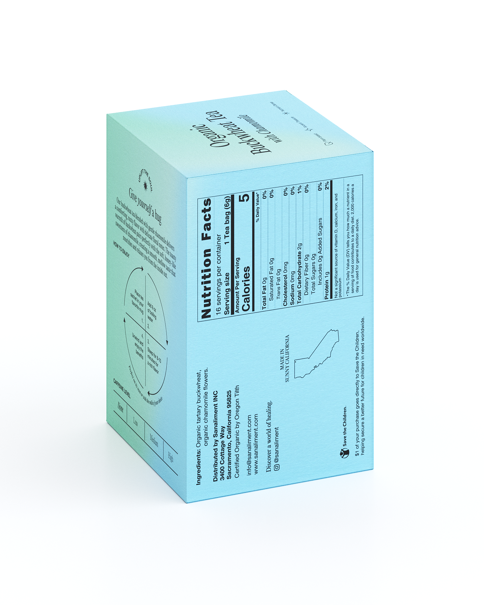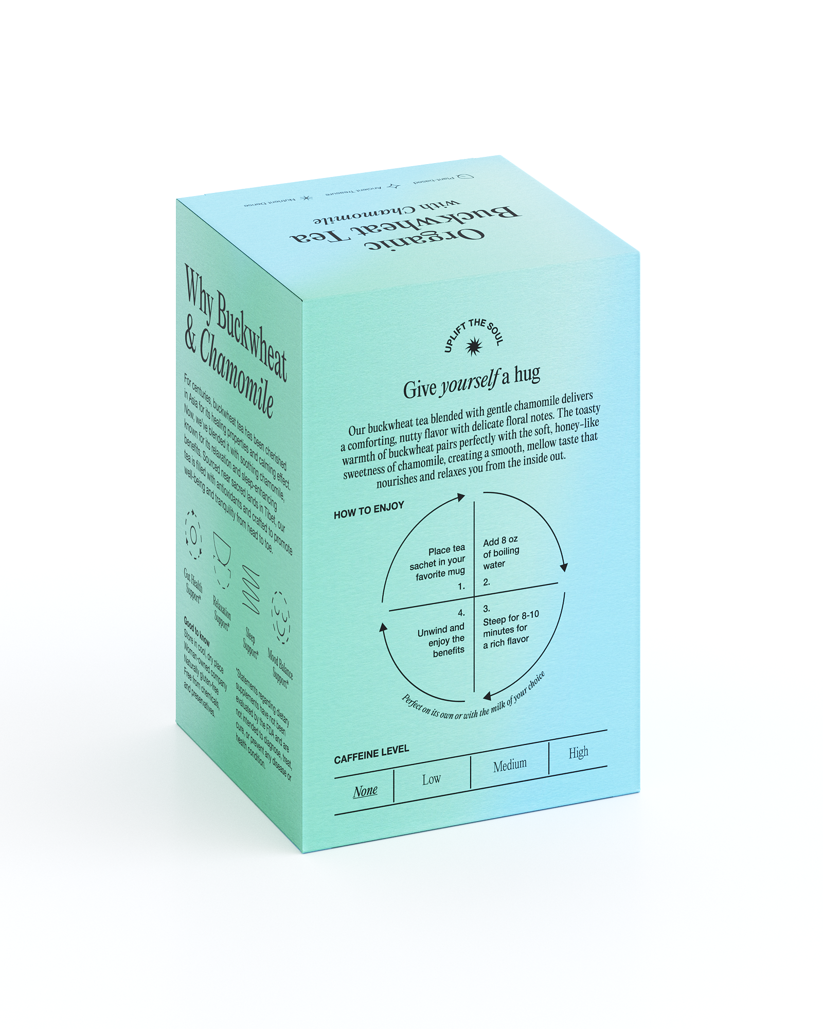 This naturally caffeine-free and gluten-free herbal tea features roasted Himalayan Tartary buckwheat blended with soothing chamomile flowers. The result is a nutty, aromatic brew with soft floral notes—perfect for unwinding at any time of day.